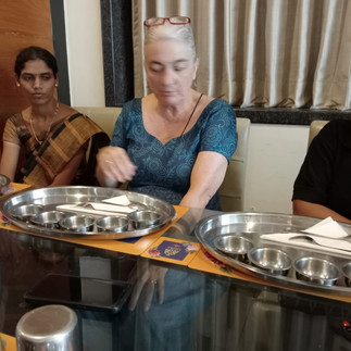 If I had more time in India, I would volunteer with this organization. Perhaps there will be future opportunities to do so... On our way back, we stopped at a restaurant that serves "thali" dishes -- basically a big plate of a wide assortment of foods. Look at how much food there was! And I could have as much as I wanted of everything. My mouth is watering just looking at these photos.
